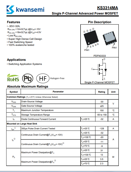 首頁 > 產(chǎn)品中心 > MOSFET > P溝道