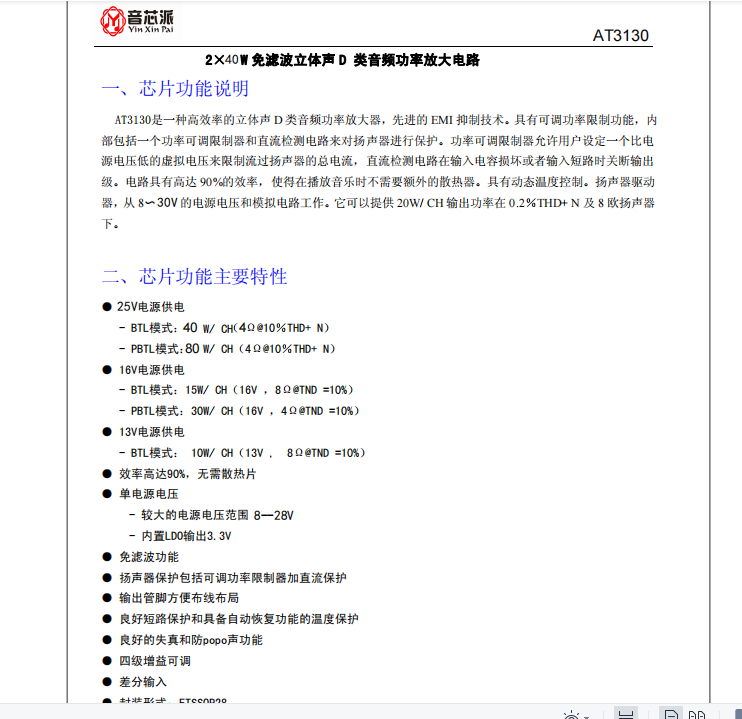 首頁(yè) > 產(chǎn)品中心 > 音頻功放IC > D類(lèi)及雙模音頻功放
