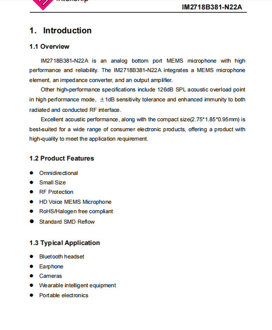首頁 > 產(chǎn)品中心 > 硅麥麥克風(fēng) > 模擬