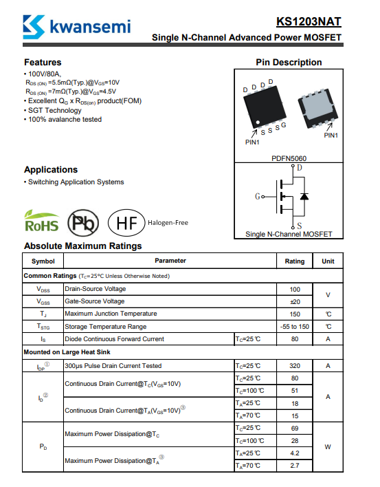 首頁 > 產(chǎn)品中心 > MOSFET > N溝道