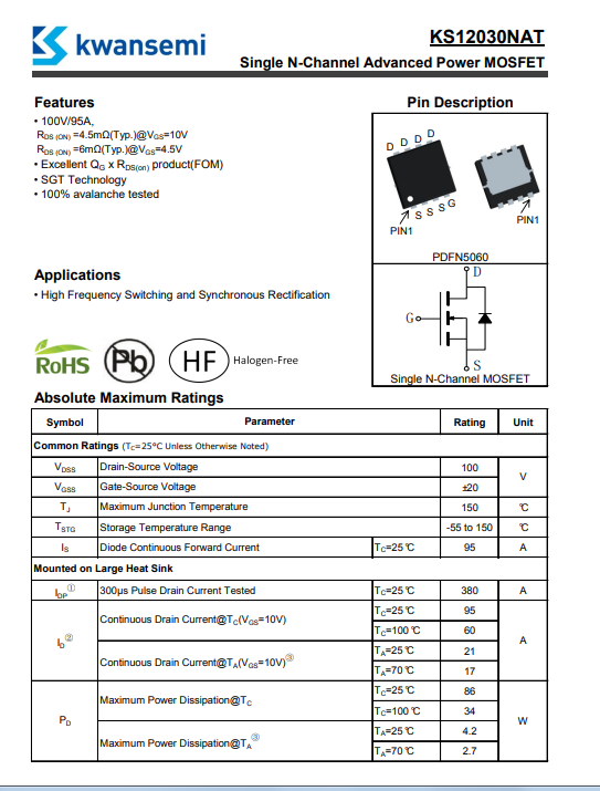 首頁 > 產(chǎn)品中心 > MOSFET > N溝道