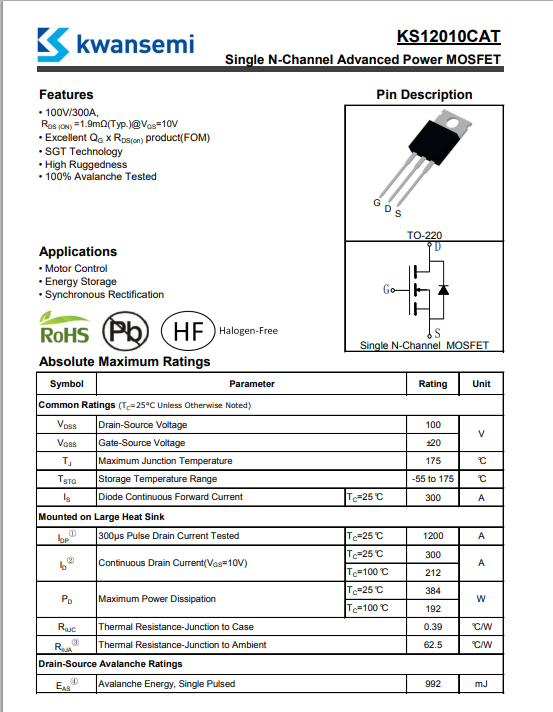 首頁 > 產(chǎn)品中心 > MOSFET > N溝道